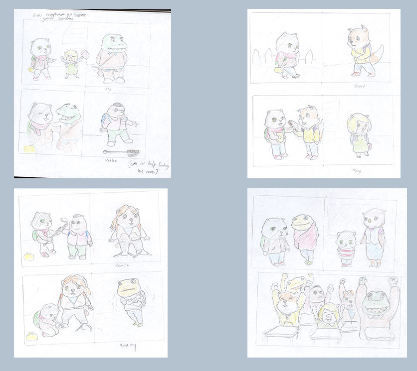 The protagonist of my story is an anthropomorphic cat-boy by the name of Caleb, and the story follows him on his walk to his first day at a new school in a town he had just moved to. Luckily for Caleb, he comes across every student in his new class who each has their own problem that Caleb is more than happy to help them with. In doing so, Caleb gains affinity with all of his new classmates before the school day even begins. What I am trying to show is that doing even one act of kindness for someone, even if they are a total stranger, can be a great way to start a friendship with that person.